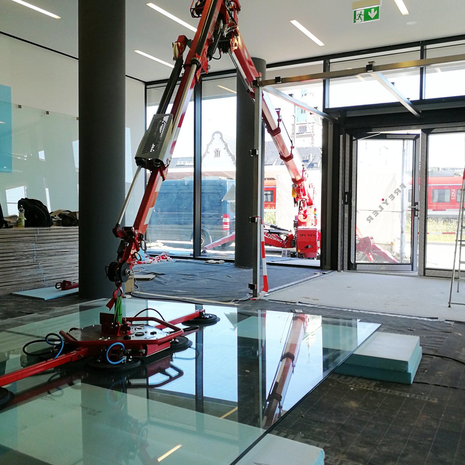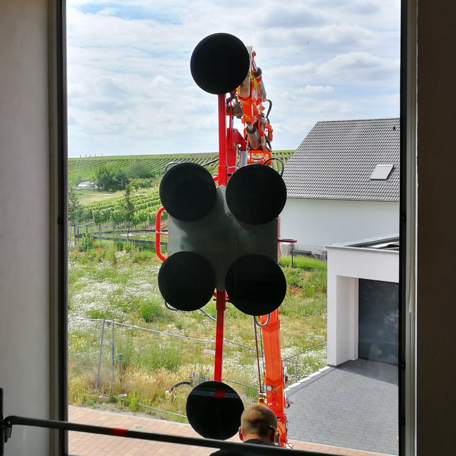 Die Vakuumanlage GSK-300/450 zeichnet sich durch hervorragende Saugeigenschaften aus und ist für Traglasten bis 450 kg ausgelegt. Die Zweikreissauganlagen nach DIN 13155 sind je Saugkreis mit einer separaten Vakuumpumpe ausgerüstet. Die 4 flexibel und einfach an- und ablegbaren Verlängerungsarme erlauben zudem auch das Handling großflächiger Elemente. Mit der Vakuumanlage GSK-300/450 können Bauelemente manuell um 90° geschwenkt und um 360° gedreht werden.